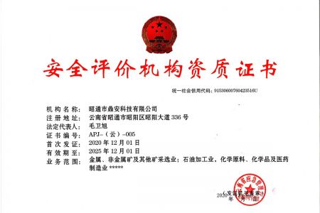 2003年11月10日,昭通市鼎安科技有限公司成立,初始主要從事第三方安全工程技術服務,經多年運營,發(fā)展為多專業(yè)綜合科技平臺,為社會提供多種專業(yè)技術服務工作。 現(xiàn)公司注冊資金為1200萬元,公司法定代表人:毛衛(wèi)旭。公司主要業(yè)務:安全評價、安全標準化評審、安全工程技術服務;環(huán)境監(jiān)測、職業(yè)衛(wèi)生檢測、檢驗;法律訴訟及非訴訟服務;司法鑒定、固定資產投資項目節(jié)能服務;工程咨詢;工程測量測繪;安全教育培訓等。是安全生產服務、安全教育培訓機構,也是環(huán)境監(jiān)測和職業(yè)衛(wèi)生服務機構,同時也是綜合的檢測檢驗、綜合科技平臺服務機構。多年來為公、檢、法、司、軍、警、海關、仲裁、安監(jiān)、工礦商貿企業(yè)、社會團體及個人提供多專業(yè)技術服務。